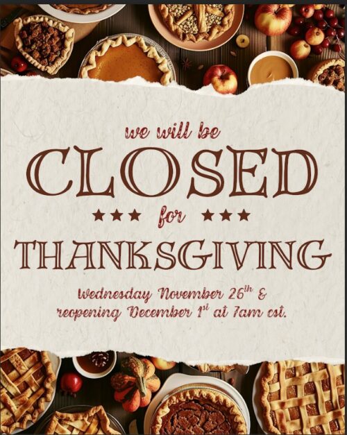 Our business hours will be changed to 7:00 a.m. to 5:00 p.m. (Central Time) Monday thru Thursday. We will be CLOSED on Friday. Effective April 9th, 2024.